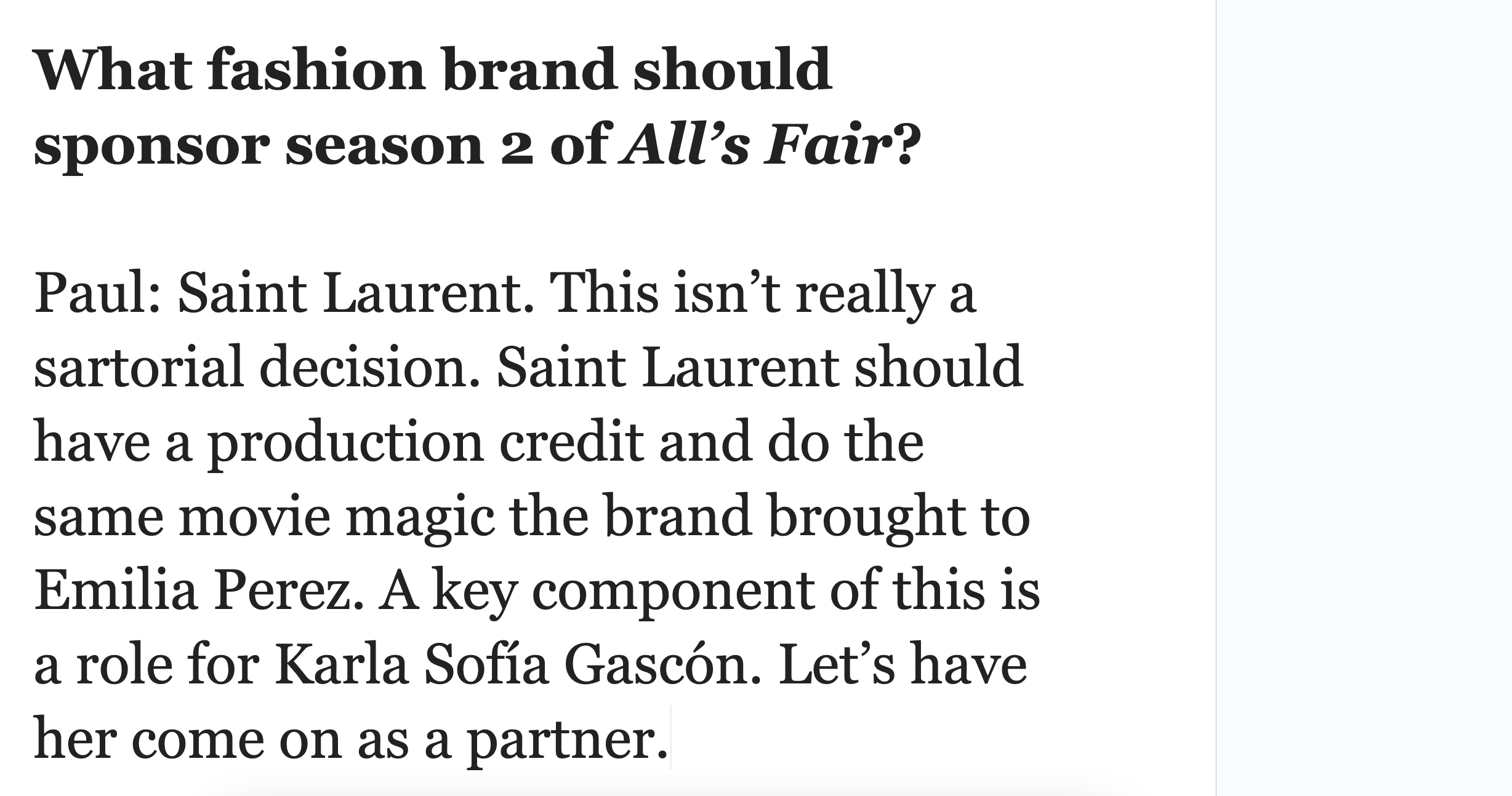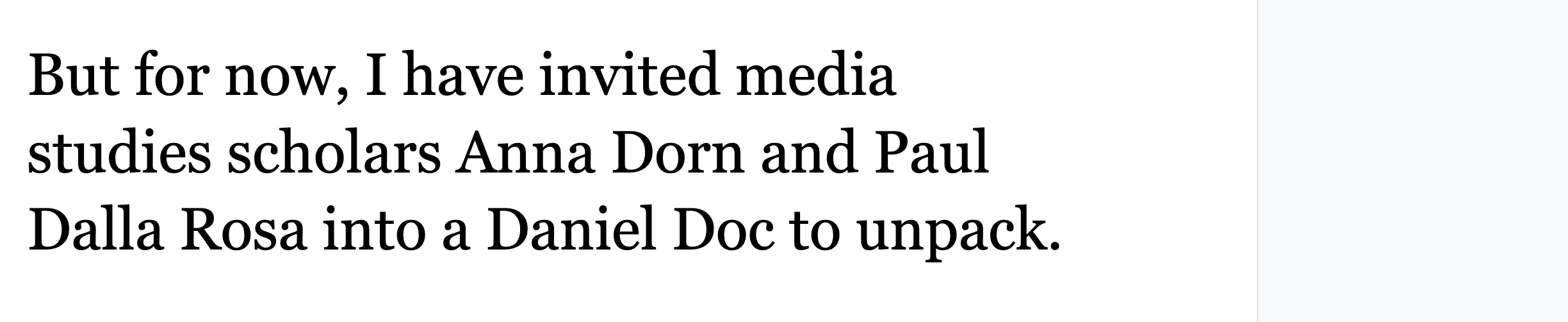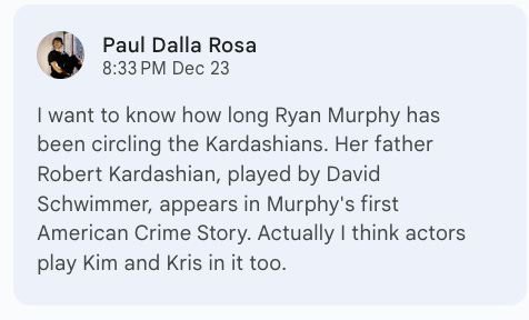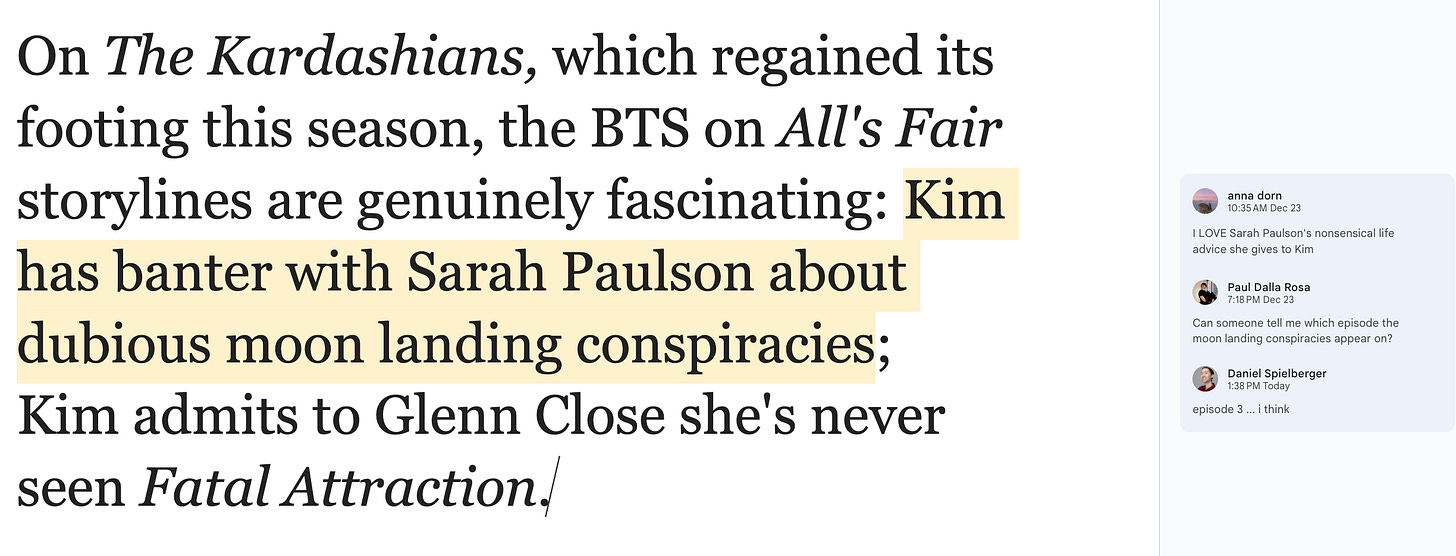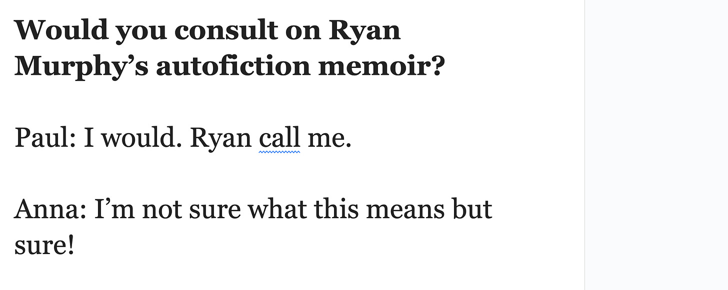 Notes on Kamp: A Symposium on "All's Fair" Anna Dorn and Paul Dalla Rosa chat about last year's worst/best showDaniel SpielbergerJan 02, 20262ShareThis is another installment of the Daniel Docs Interview series. I send someone a Google Doc of questions and they have 24 hours (or so) to respond with answers and suggested notes on their bio. Do you want a Daniel Doc? Email dspielbe@gmail.com.Follow Anna and Paul…