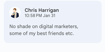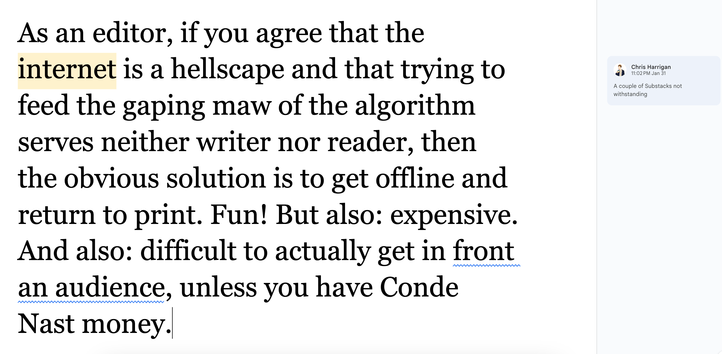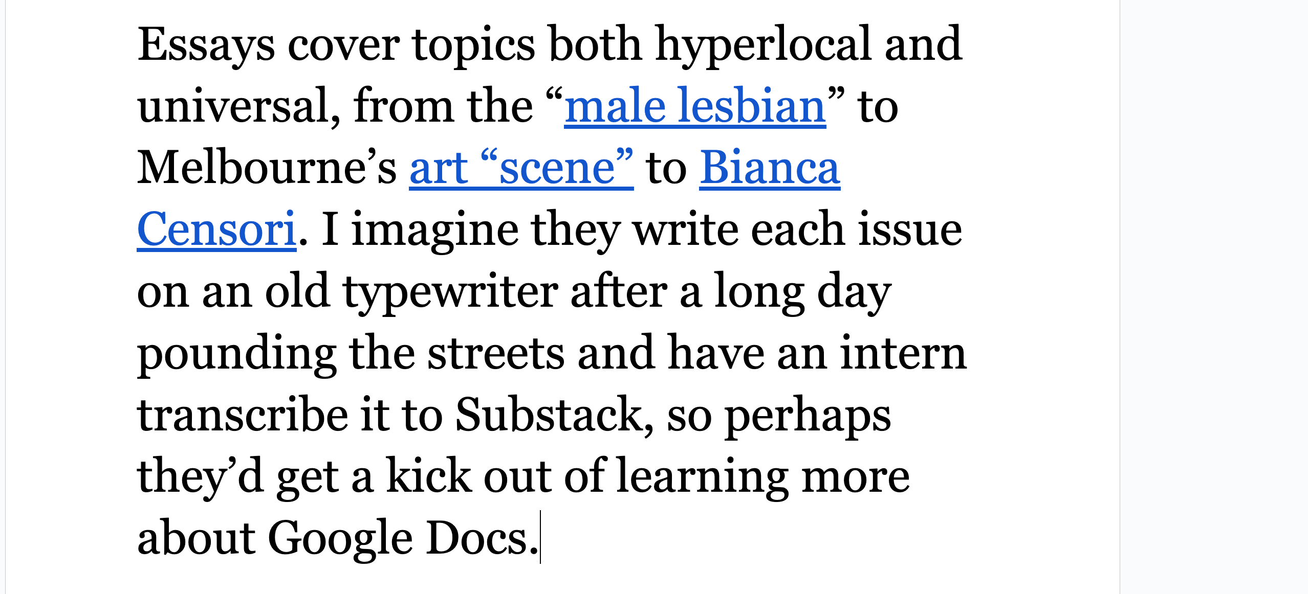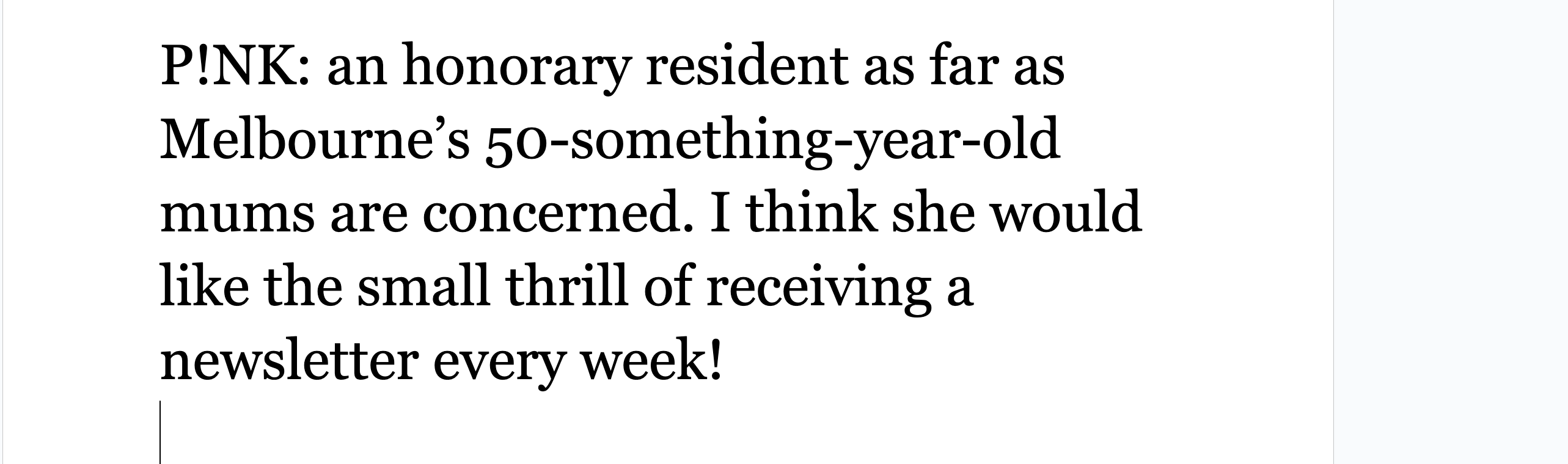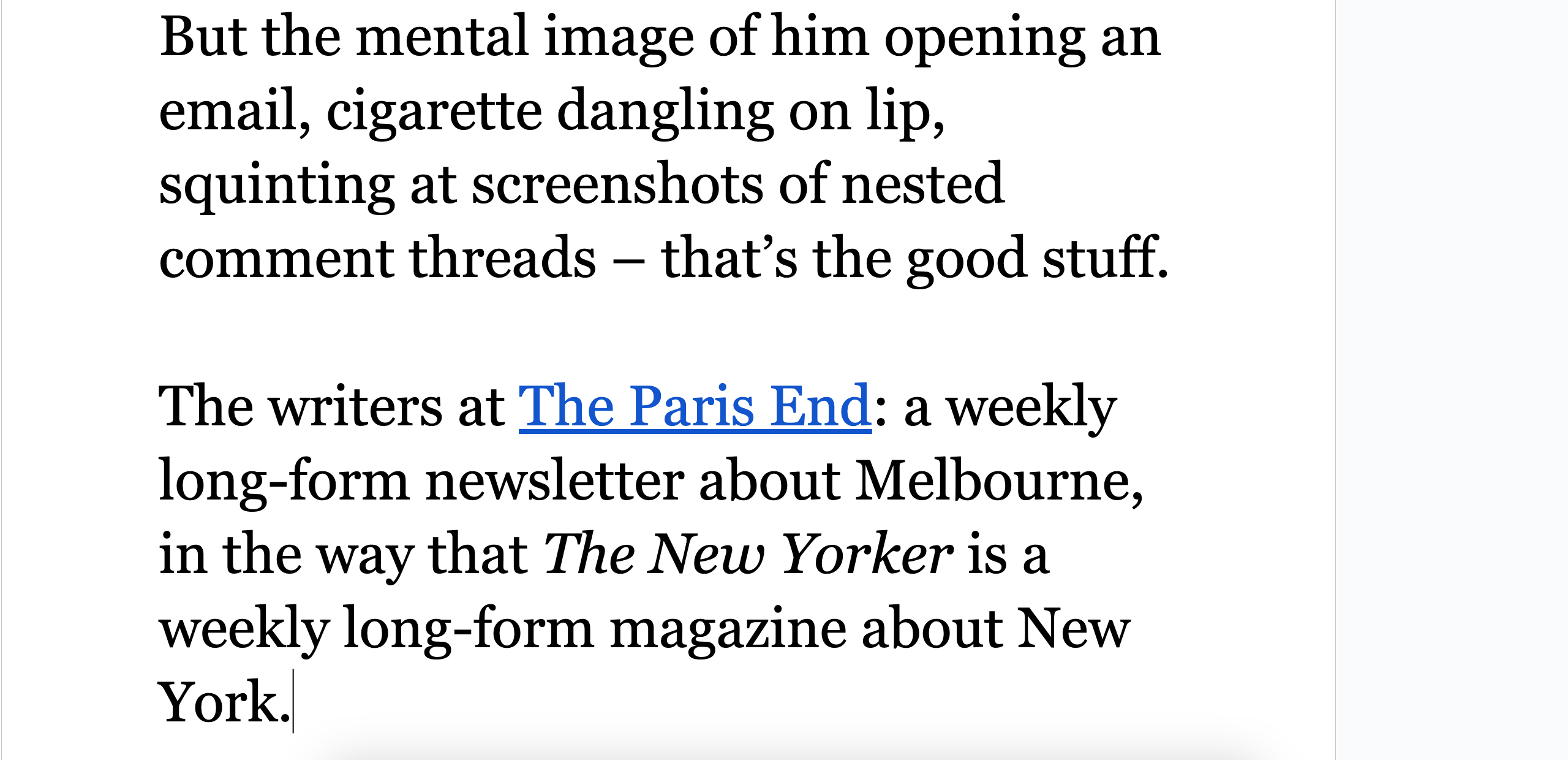 The Daniel Docs Interview: Chris Harrigan"The Story" editor chats about print magazines, P!NK, and Melbourne Daniel SpielbergerFeb 04, 2026411ShareThis is another installment of the Daniel Docs Interview series. I send someone a Google Doc of questions and they have 24 hours (or so) to respond with answers and suggested notes on their bio. Do you want a Daniel Doc? Email dspielbe@gmail.com.This magazine survived the tariffsLearn more about The Story , Subscribe to The Story