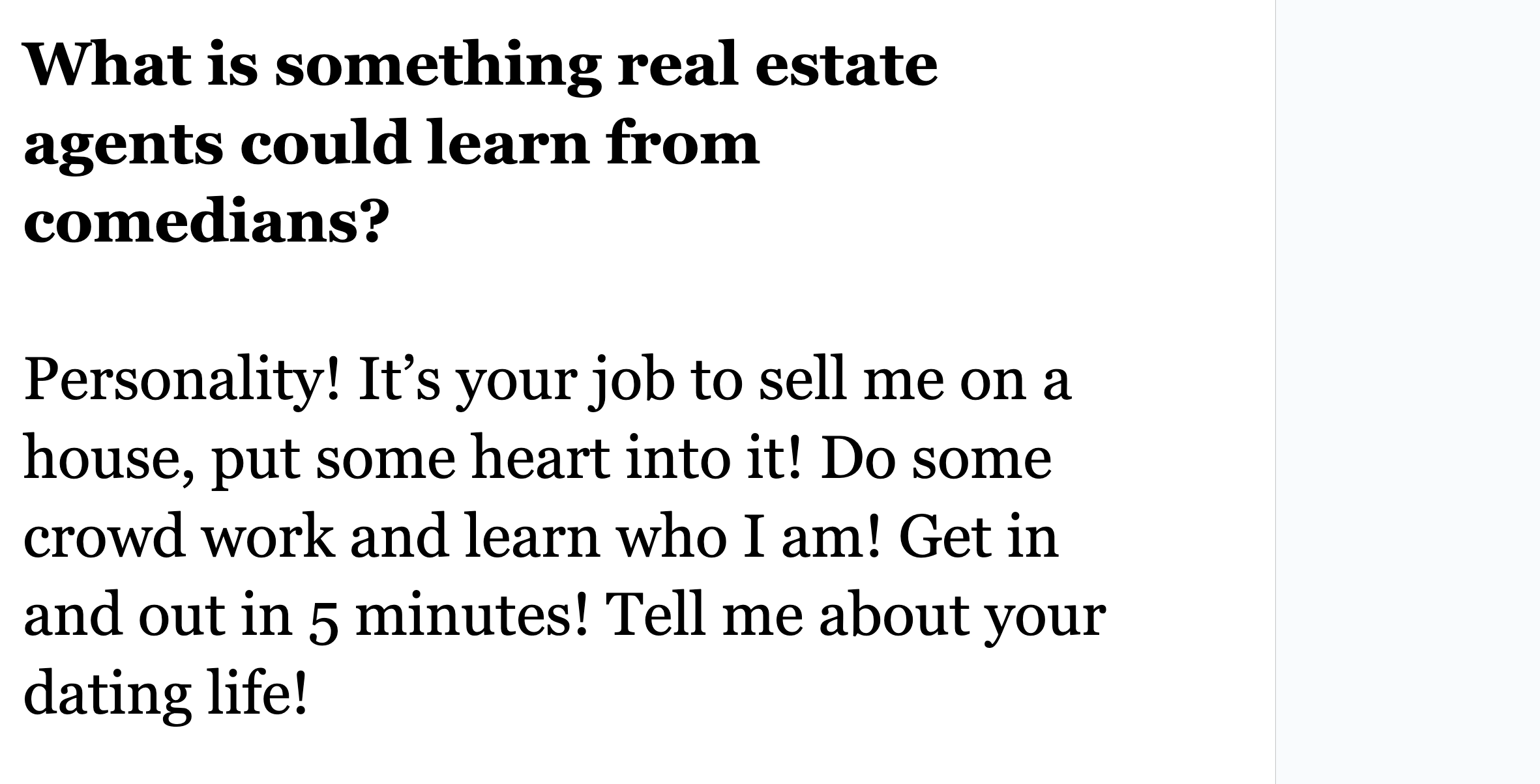 The comedian chats about robots, real estate agents, and brisket quesadillas