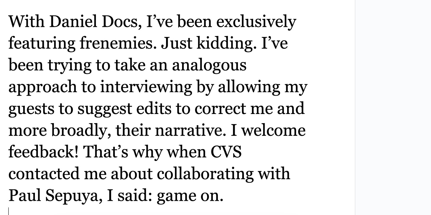 This is another installment of the Daniel Docs Interview series. I send someone a Google Doc of questions and they have 24 hours (or so) to respond with answers and suggested notes on their bio. Do you want a Daniel Doc? Email dspielbe@gmail.com.